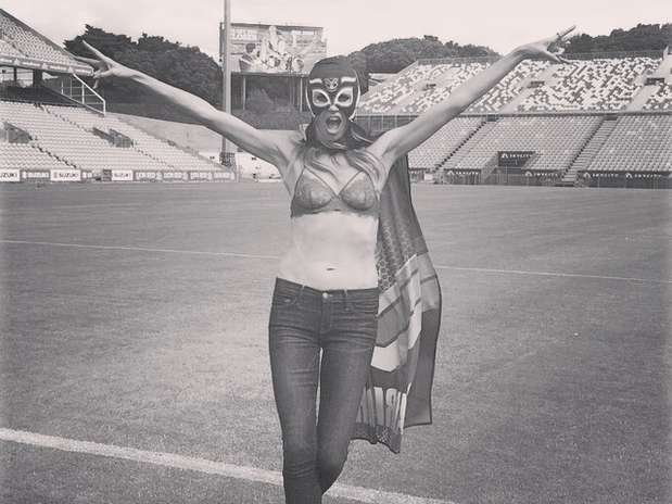 Heidi Klum mostrou que está em plena forma, aos 41 anos, em uma foto postada no seu Instagram nesta sexta-feira (30). Siga Terra Estilo no Twitter Na imagem, ela aparece usando apenas calça jeans, uma máscara e um sutiã rendado, no estádio do time de rugby Warriors, em Auckland, na Nova Zelândia. Mais cedo, ela postou outra foto em que aparece cercada pelos jogadores usando somente cueca. Na legenda, ela brincou que se eles se mostraram, ela também mostraria seus dotes. A modelo alemã está na cidade pela primeira vez, para divulgar sua coleção de roupas íntimas, a Heidi Klum Intimates. Fotos: Instagram/Reprodução Qual modelo você seria? Faça o teste e descubra