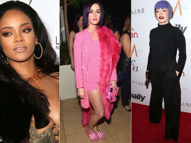 O prêmio The Daily Front Row Los Angeles Fashion Awards, que aconteceu nesta quinta-feira nos Estados Unidos, reuniu várias celebridades do showbiz também ligadas à moda. Rhianna, Katy Perry, Miley Cyrus estiveram presentes usando peças da Moschino, assinadas por Jeremy Scott, um dos homenageados da noite. Rihanna exibiu um casaco com brilhos e pele na gola. E claro, sem nada por baixo, deixando os seios quase à mostra. Nos pés, sapatos assinados por Christian Louboutin, também presente no evento. Katy Perry vestiu peças da coleção que Scott fez inspirado na Barbie. Resultado: look todo rosa, composto por shorts e blusa e casaco com cristais, estola enorme de pele, clutch. E, ops, nos pés, chinelos Adidas, rosa e branco. Cor que combinava com os cabelos, agora rosa, de Nicole Richie. Ah: Katy Perry tingiu os seus de roxo, novamente. A cantora Rose McGowan foi com uma peruca tipo Playmobil roxa. A italiana Moschino sempre foi uma grife com estilo engraçado, agora revigorado com a entrada de Scott, que já fez também peças inspiradas no McDonalds. Entrando na brincadeira, Miley Cyrus usou um vestido tipo camiseta com a frase I Had Nothing to Wear, So I Put On This Moschino Dress. Em tradução livre: Não Tinha Nada para Vestir, Então Coloquei Este Vestido Moschino. Vem ver os looks. Duelo de pior look Emmy x VMA