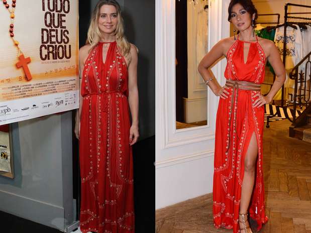 Coincidência fashion é o que não falta no mundo das famosas. A última foi com Letícia Spiller e Daniele Suzuki, que usaram vestido igual da Bo.Bô, que custava R$ 648 e, com a liquidação, sai por R$ 388,80. Siga Terra Estilo no Twitter Na última quarta-feira (21), Letícia apostou no modelo longo bordado Cigana para conferir a pré-estreia do filme Tudo Que Deus Criou, que conta com ela no elenco. Combinou com cabelos soltos e make suave. Daniele foi clicada com o modelito de fenda no lançamento da coleção St. Tropez da marca, em outubro do ano passado. Para completar, marcou a cintura com cinto grosso, usou maxibrincos e apostou em coque. Na sua opinião, quem se saiu melhor?