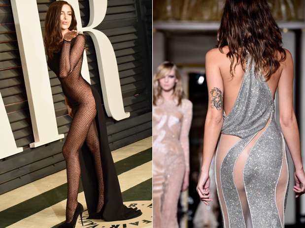 Isabelli Fontana ou Heidi Klum? Irina Shayk ou Jourdan Dunn? Pois bem, as festas pós-Oscar, promovidas pela revista Vanity Fair e pela da Fundação Elton John contra a Aids, levaram famosas com muita transparência com peças de alta-costura da Versace. No desfile da grife italiana, dia 25 de janeiro em Paris, a brasileira Isabelli Fontana e a angel Jourdan Dunn já haviam saído em várias publicações exatamente por pisarem a passarela com peças sem calcinhas. Siga Terra Estilo no Twitter Quando se pensa que os looks são apenas para desfiles, outras beldades corajosas saem de casa da mesma forma. O vestido prata com transparência e cristais aplicados foi desfilado pela brasileira e também usado pela veterana Heidi Klum no último domingo. Já o macacão/vestido de tela transparente, que deixa pelo menos metade do corpo à mostra foi a escolha da ex-namorada de Cristiano Ronaldo para as comemorações pós-Oscar. E quem ostentou a peça na passarela da Versace em Paris foi a angel Jourdan Dunn. Modelos, magras e altas, só elas mesmo para exibir roupas ousadas como as propostas por Donatella Versace. Nesse duelo de tops, quem você acha que se saiu melhor? Isabelli Fontana x Heidi Klum A brasileira mostrou, de frente e de costas, que o vestido revela mais do que as mortais podem usar. E Heidi Klum, aos 41 anos, prova que tem corpo para o modelito Versace. Irina Shayk x Jourdan Dunn A ex-namorada de Cristiano Ronaldo, a russa Irina Shayk, ousou no macacão/vestido desfilado pela angel Jourdan Dunn em janeiro na apresentação de alta-costura da grife italiana. Difícil saber quem ficou melhor, não?