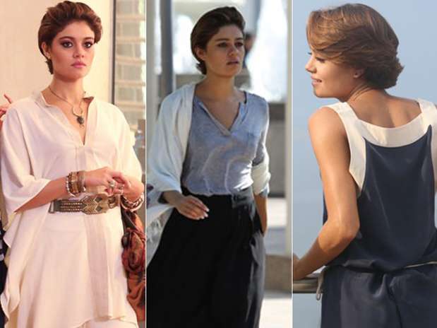 Os looks fluidos e de cores neutras da Alice, vivida por Sophie Charlotte na novela Babilônia , têm chamado a atenção. Com mix de pulseiras e acessórios grandes, trazem a sofisticação de Dubai, onde a personagem morava no começo da trama. Siga Terra Estilo no Twitter Com a mudança para o Rio de Janeiro, peças mais curtas e mostrando mais do corpo marcam presença. Descobri que a Alice é uma personagem "babilônica", que vai se adaptando às situações. Logo no início, mostra o estilo de vida dela em Dubai, então, surgem roupas com comprimentos e larguras diferentes, tecidos mais fluidos e acessórios maiores", disse Sophie ao site da trama. Que tal copiar alguns dos visuais apresentados na telinha? Veja marcas e preços: Gringas x Brazucas: quem arrasa mais com looks de festa?